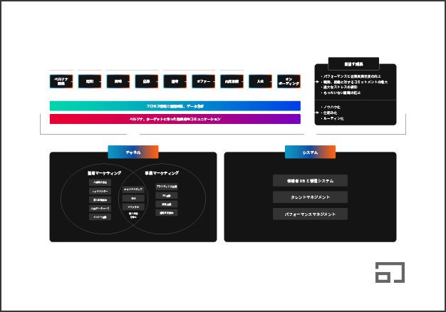 企業戦略を組織として実行することで仮説検証のマネジメントサイクルが回り、その経験が企業として資産になります。同時に、組織として求める行動と個人が現場で実践する行動が異なるということが頻発します。この乖離をマインドセット、スキルセット双方の面から解決していきます。